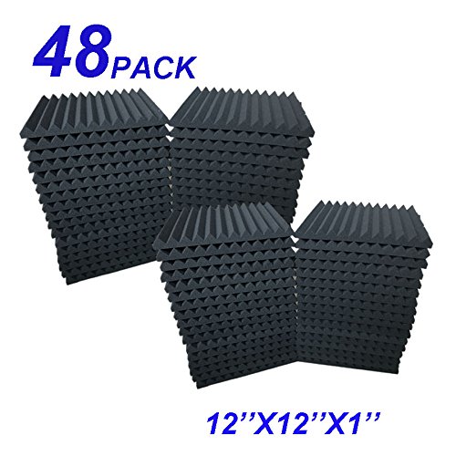 48 Pack 12″X 12″X1″ Acoustic Panels Studio Soundproofing Foam Wedge Tiles, (48BLACK)