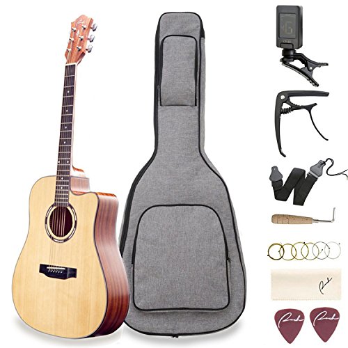 Acoustic Guitar Ranch 41″ Full Size Cutaway Beginners Wooden Guitars Kit Bundle with Gig Bag, Tuner, Guitar Capo, Steel Strings, Strap, 2 Picks, Adjustment tool Set – Starter Guitar Pack for Adults