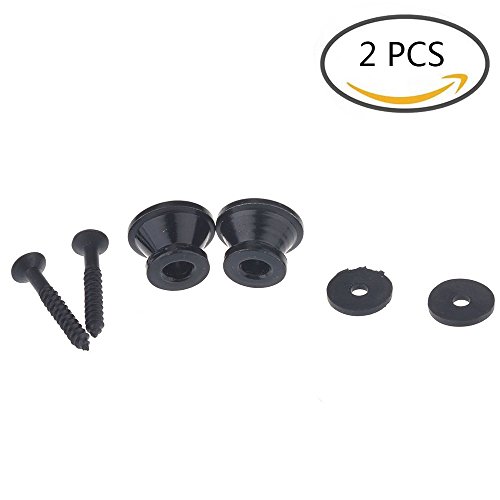 Apros Electric Acoustic Guitar Bass Ukulele Strap Lock End Pins Tail Nail Golden with rubber cushion (2 Pack, Black)