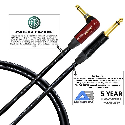 AUDIOBLAST 12 Foot HQ-1 – Ultra Flexible – Dual Shielded (100%) – Guitar Bass Instrument Cable w/Neutrik NP2RX-AU-SILENT & Neutrik NP2X-B ¼ Inch (6.35mm) TS Plugs