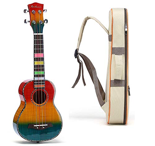 Balnna Soprano Ukulele Maple 21 inch Traditional High-gloss Rainbow Learn to Play,Color String with Soft Case Gig Bag