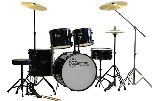 Look no further — this set has it all! Brand New FULL-SIZE Drum Set: # Look at these AMAZING features: 22″x14″ 12 Lug Bass Drum # 5 1/2″ x 14 Wood Snare drum # 12″x10″ and 13″x10 Mound Toms # Adjustable Tilt Memory Locks # 16″x16″ Floor tom # 2-12″ Hi-Hat Cymbals # 1-14″ Crash/Ride Cymbal # Snare Stand # Hi-Hat Stand # Cymbal Stand # Chain Driven Bass drum pedal # Drummer’s Throne Included!!! # Pair drum sticks # Drummers Key & Extra Boom Cymbal and Stand. Comes in a HIGH GLOSS Black Finsih. An amazingly affordable way to start drumming!