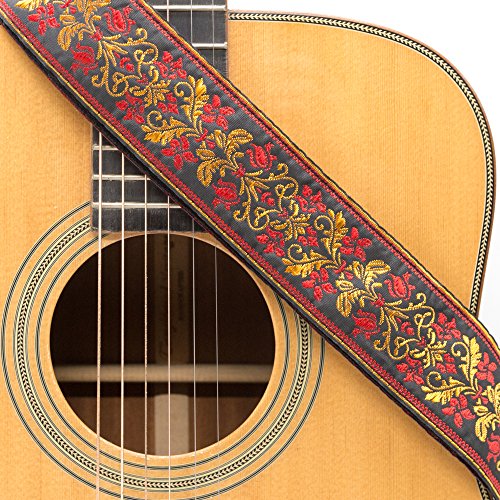 CLOUDMUSIC Guitar Strap Jacquard Weave Strap With Leather Ends Vintage Classical Pattern Design Guitar Picks Free