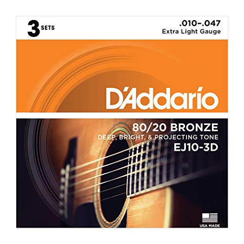 D’Addario EJ10 Bronze Acoustic Guitar Strings, Extra Light, 10-47, 3 Sets (EJ10-3D)