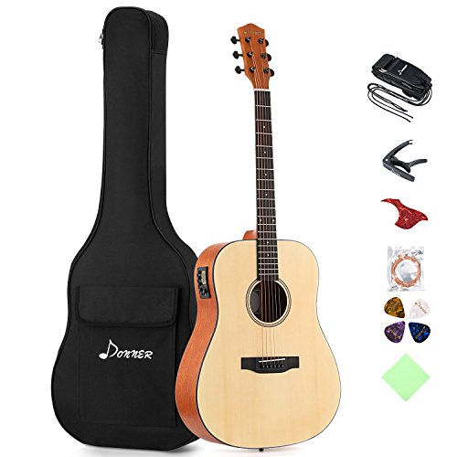 Donner DAG-1E Electric Acoustic Guitar Package Full-size 41’’ Dreadnought Guitar Built-in Preamp with Bag Strap Tuner String