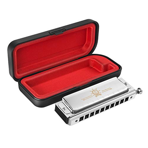 - ♫ Advanced Material – Specially supplied Phosphor Bronze Reeds , high sensitivity, weak tone clear, strong explosive force, durable and difficult to be broken,sound quality protection. High-grade non-toxic ABS combs, one-time molding, waterproof and durable. Super-thick stainless brass base plate with 22 screws fixing, practical non-leakage. Light weight high hardness ABS harmonica case, portable and resistant to fall.
