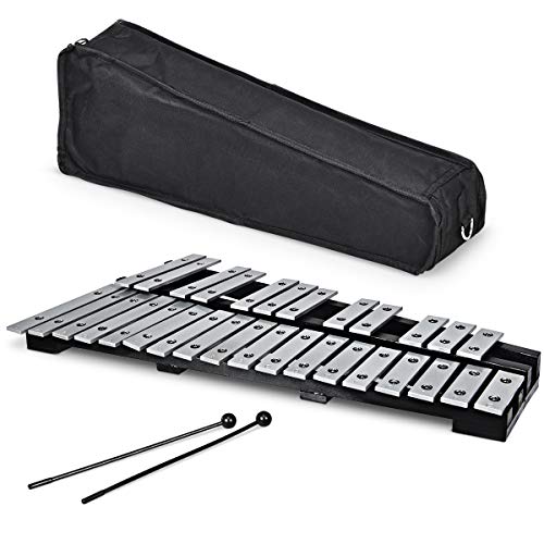 Giantex Foldable Glockenspiel Xylophone 30 Note, with Wood Base and 30 Metal Keys, 2 Rubber Mallets, Carrying Bag, Professional Glockenspiel Xylophone Percussion Instrument for Adults and Kids