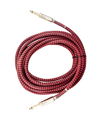 Guitar Cable 20 ft/6m by JiGMO – For Acoustic Guitar, Electric & Bass Guitars, Violins, Guitar amps | Straight-Straight ¼ Inch plug | Metal Spring Reinforcement, Red Black Tweed Cloth Jacket