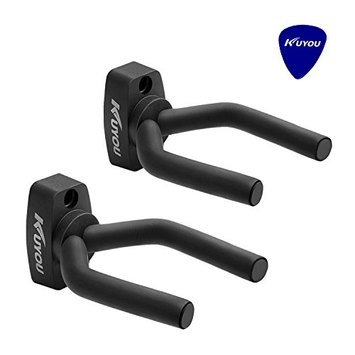 Guitar Wall Hangers Stands, KuYou Set of 2 Guitar Hangers with One Pick Keep Hook Holder Wall Mount Fits all size Guitars