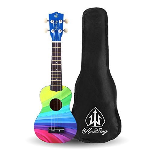 Honsing Soprano Ukulele Beginner Hawaii kids Guitar Uke Basswood 21 inches with Gig Bag- Rainbow Stripes Color matte finish