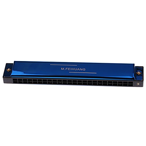 Jili Online Portable Professional 24 Hole Harmonica Key of C Mouth Organ for Beginners Music Learning Blue