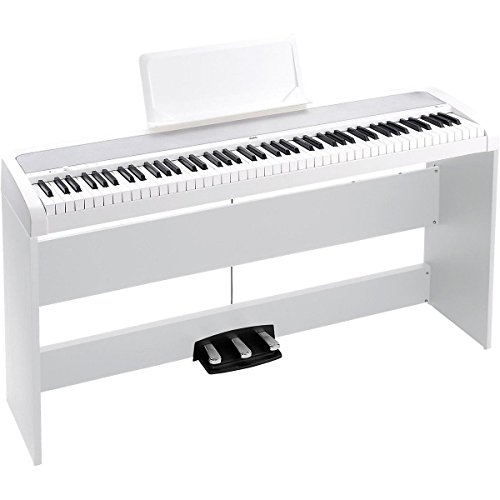 B1SP 88 Keys Digital Piano with Stand and 3-Pedal Unit White “Compact and cost-effective, the KORG B1 is an excellent choice for home, stage or practice. The streamlined design delivers the features most important to any pianist: an authentic touch, superior sound and ease of use. For those who are just starting or those who want to start again, consider the KORG B1 Digital Piano.To achieve the deep, rich tones of an acoustic piano within its compact body, the B1 Digital Piano relies on KORGaTMs servo-assisted MFB technology, a pair of full-range speakers, plus a passive radiator. Together, these elements reproduce the rich, resonant tones that emanate from the large body of an acoustic piano, with particular attention paid to the low-frequency range.The speaker system is equipped with an active servo that controls the speaker cone, allowing low frequencies to be reproduced with minimal distortion. It achieves an ideal frequency response and reproduces lower frequencies accurately; any coloration caused by the speaker enclosure is immediately corrected. Eight expressive soundsThree flavors of acoustic piano are provided along with two electric pianos, a harpsichord, and two organ soundsa”each delivered with precise realism. This set of frequently used sounds lets you expand your repertoire to cover many genres. The dedicated PIANO PLAY button instantly recalls the Concert Grand Piano sound.NH KeyboardThe B1 Digital Piano is equipped with KORGaTMs NH (Natural Weighted Hammer) keyboard action, which provides a heavier touch in the lower registers, transitioning to a lighter touch in the upper regionsa”just as on a traditional piano.Improved Music RestThe music rest of the B1 Digital Piano features a page retention pocket that keeps music pages and folios from turning unexpectedly during performancea”printed music up to 10 mm (approx.) in thickness can be accommodated. This thoughtful addition allows you to concentrate on your playing.The metal damper (sustain) peda…