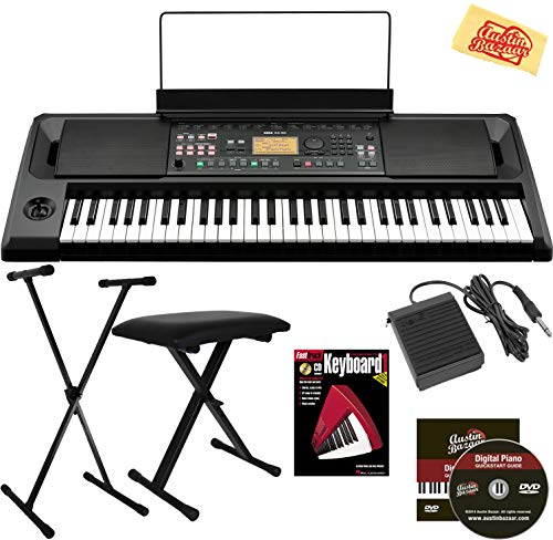 Korg EK-50 Entertainer Keyboard Bundle with Adjustable Stand, Bench, Sustain Pedal, Instructional Book, Austin Bazaar Instructional DVD, and Polishing Cloth
