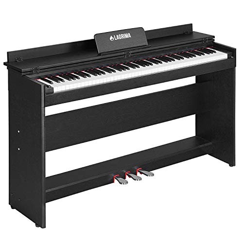 LAGRIMA 88 Key Digital Piano, Portable Electric Keyboard Piano for Beginner/Adults W/Music Stand+Power Adapter+3-Pedal Board+Instruction Book+Headphone Jack(Black Only Piano)