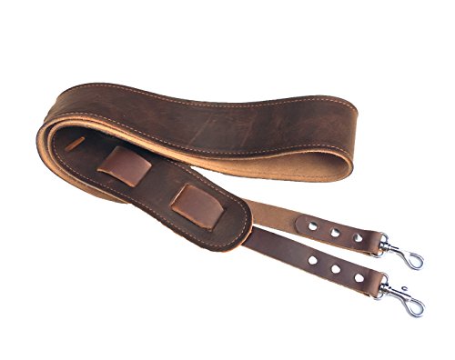 This strap attaches with metal clips. This versatile style is great for a player who likes to quickly switch their strap between multiple instruments or prefers to remove their strap when storing their instrument in its case. It is made with a soft leather shoulder pad made from distinctive dark brown pull-up leather and backed in fine quality light sand suede. The shoulder piece is 2 1/4″ wide and made of distinctive pull-up leather that quickly adds a vintage patina.
