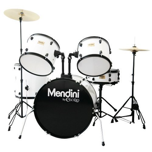 Mendini by Cecilio Complete Full Size 5-Piece Adult Drum Set with Cymbals, Pedal, Throne, and Drumsticks, Gloss White, MDS80-WH