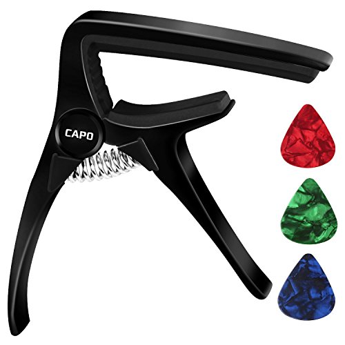 - Professional capo built to last :built of lightweight high quality mental material,Quality steel spring,perfect silicon cushion.