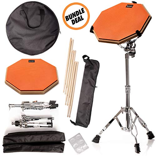 - ✔ BUNDEL PACKAGE: Bundle package includes a premium quality PRACTICE PAD and DRUM STAND. Along with these items, you will receive all the accessories you need to use with your drum pad: 3 pairs of drum sticks, 6 gels for drums and 3 portable covers for your drum sticks, practice pad and stand; With your purchase you also get both AUDIOBOOK and EBOOK versions of the bestseller book “Drumming for Beginners” (usually $30) to help get you started; The only practice drum pad on Amazon that includes a