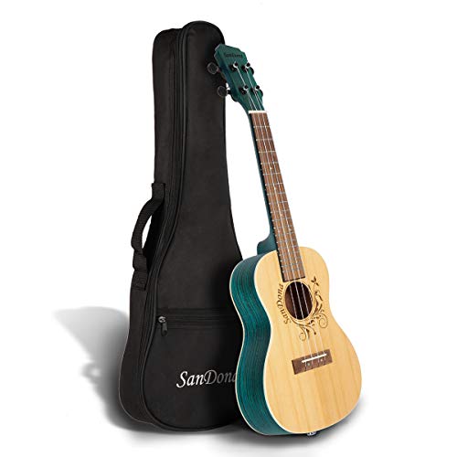 SanDona’s Concert Ukulele Kit is the answer for your musical needs. Ukuleles sound better, are easier to carry and they’re even easier to learn. They are so simple that they are the obvious instrument to start with. SanDona stands for ‘enthusiasm’, ‘happiness’ and ‘vivacity’ which they bring alive through their Ukuleles. Made from quality materials and expertise, these concert Ukuleles provide a comfortable playing feel and also inspire potential rhythm and gives a fuller sound. Details You’ll Appreciate Size: 24″ Color: Blue Sunburst Material: Faceboard: Spruce Sideboard: Zebrano Fingerboard: Walnut Nut & Saddle: OX bone Tuners: Closed Item size: Approx. 26.9 x 10.2 x 1.1 inches Item weight: 2.9 poundsAn all-in-one concert set: 1x Sondona Acoustic Electric Concert Ukelele with Under-Saddle Pickup (Aquila String Installed)