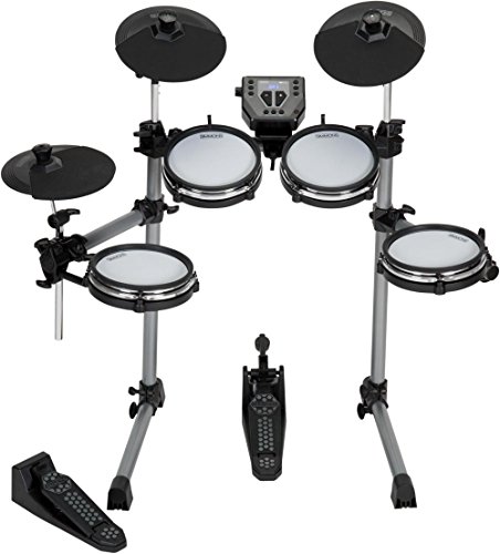 SD350 Electronic Drum Kit with Mesh Pads. The Simmons SD350 provides a bigger-than-expected drum sound with a less-than-expected price. This full-size, 5-piece mesh-head electronic drum kit is the ideal, convenient setup for rehearsals, practice and recording. And the tension-able mesh heads capture more nuanced playing than any kit in its class. The sound module features 10 drum kits, 179 custom sounds and 10 songs. The 8 in. mesh heads offer real drum feel, while the quick assembly design allows for fast and easy setups and tear-downs. With simple navigation and preset multi-pin cabling, it’s perfect for first-time drummers, or anyone needing a full-size drumming experience on a limited budget. The Simmons SD350 gives you the power to play big drums, without putting a big dent in your wallet.