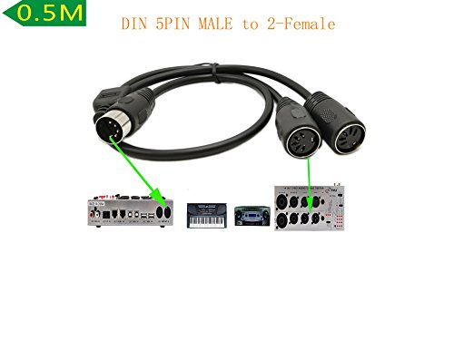 SinLoon MIDI DIN 5-Pin Splitter Y Adapter Cable, MIDI 5 Pin Male to dual 2 x DIN-5 Female Extension Audio Cable, MIDI keyboard (synthesizer, organ, electric piano, MIDI guitar (D5P M-2F,0.5meter)