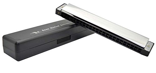 24 holes, Tremolo, harmonica. Key of F. New harmonica. Slim and beautiful design. Length of 18cm. Nice and high quality tone. Stainless steel cover plate, solid brass reed plate, plastic comb.