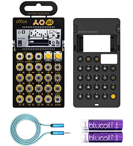 Teenage Engineering PO-24 Office Pocket Operator, Sounds, Patterns & Effects Synthesizer & Sequencer Bundle with CA-24 Silicone Case, Blucoil 6-FT Headphone Extension Cable (3.5mm) & 2 AAA Batteries