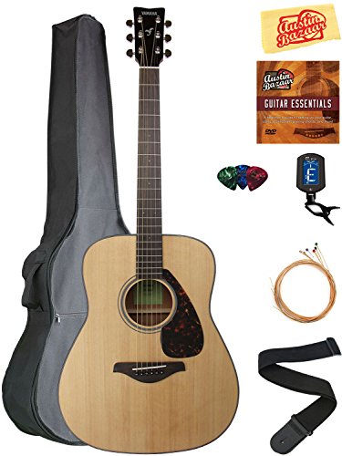 Yamaha FG800 Acoustic Guitar – Natural Bundle with Gig Bag, Tuner, Strings, Strap, Picks, Austin Bazaar Instructional DVD, and Polishing Cloth