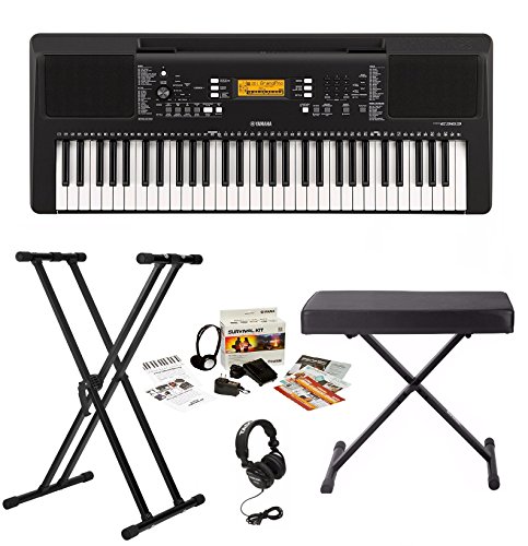 Yamaha PSRE363 61-Key Touch Sensitive Portable Keyboard Knox Adjustable Double X Keyboard Stand Knox Adjustable X Style Keyboard Bench Tascam TH-03 Multi-Use Studio Grade Headphones Yamaha Electronic Keyboard Survival Kit 1B